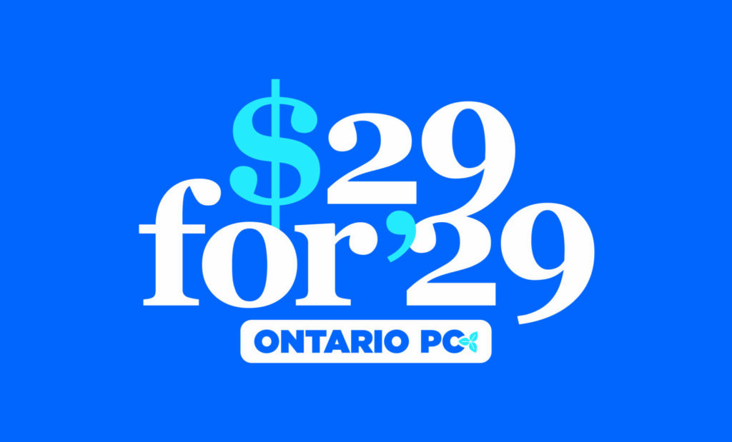 The Barrie-Innisfil PC Riding Association has introduced a new initiative called 29 for 29. It is based on ‘$29 for 29’. That’s a political donation of $29 each month as we prepare for the next election. That $29 monthly donation entitles you to a tax credit worth up to $21.75 making your actual cost only $7.25 per month. For a full year, your donations would represent $348 or a net cost of $87 after a $261 tax credit. Through this initiative and your support, you can help to ensure our ability to provide appropriate campaign funding for the re-election of our MPP Andrea Khanjin.